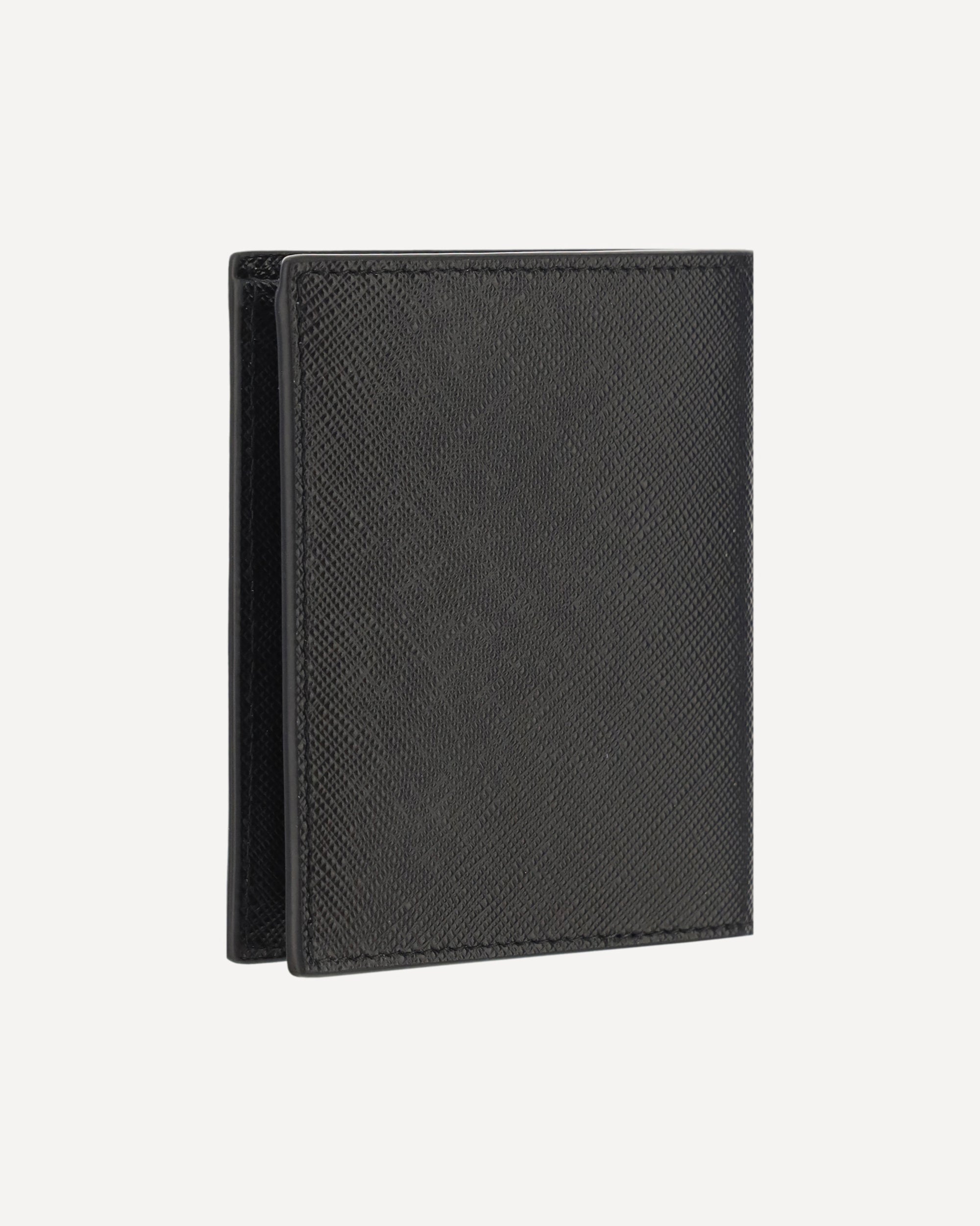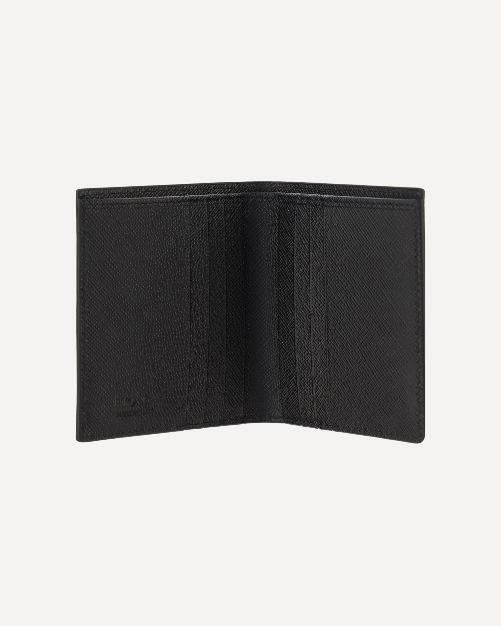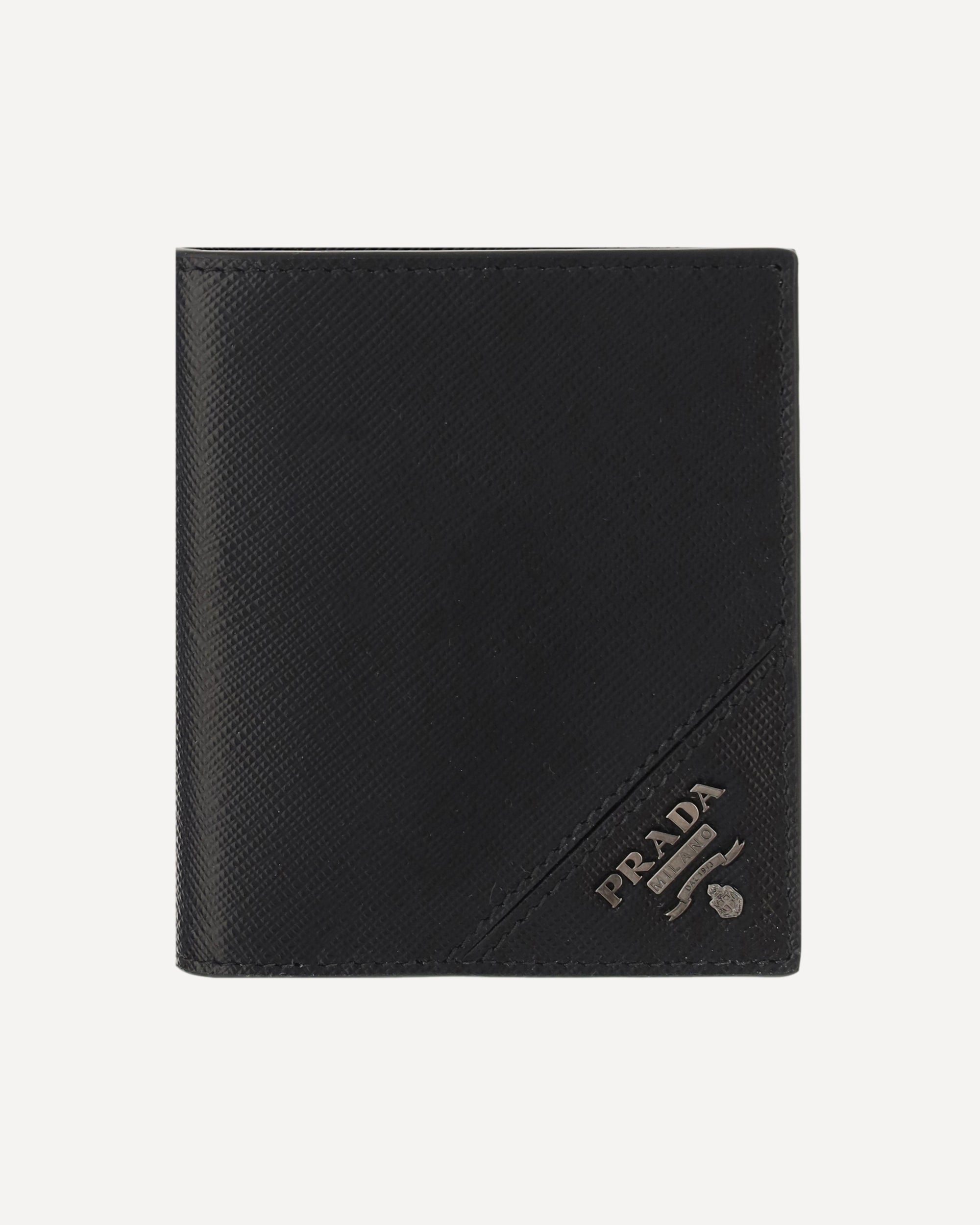 Prada's Leather Wallet combines elegance and functionality in a refined billfold design. The front features a metal plaque with the iconic logo, while the interior is organized with card slots, two open pockets and a top compartment. The embossed logo print on the inside completes the model with a classy detail typical of the brand.