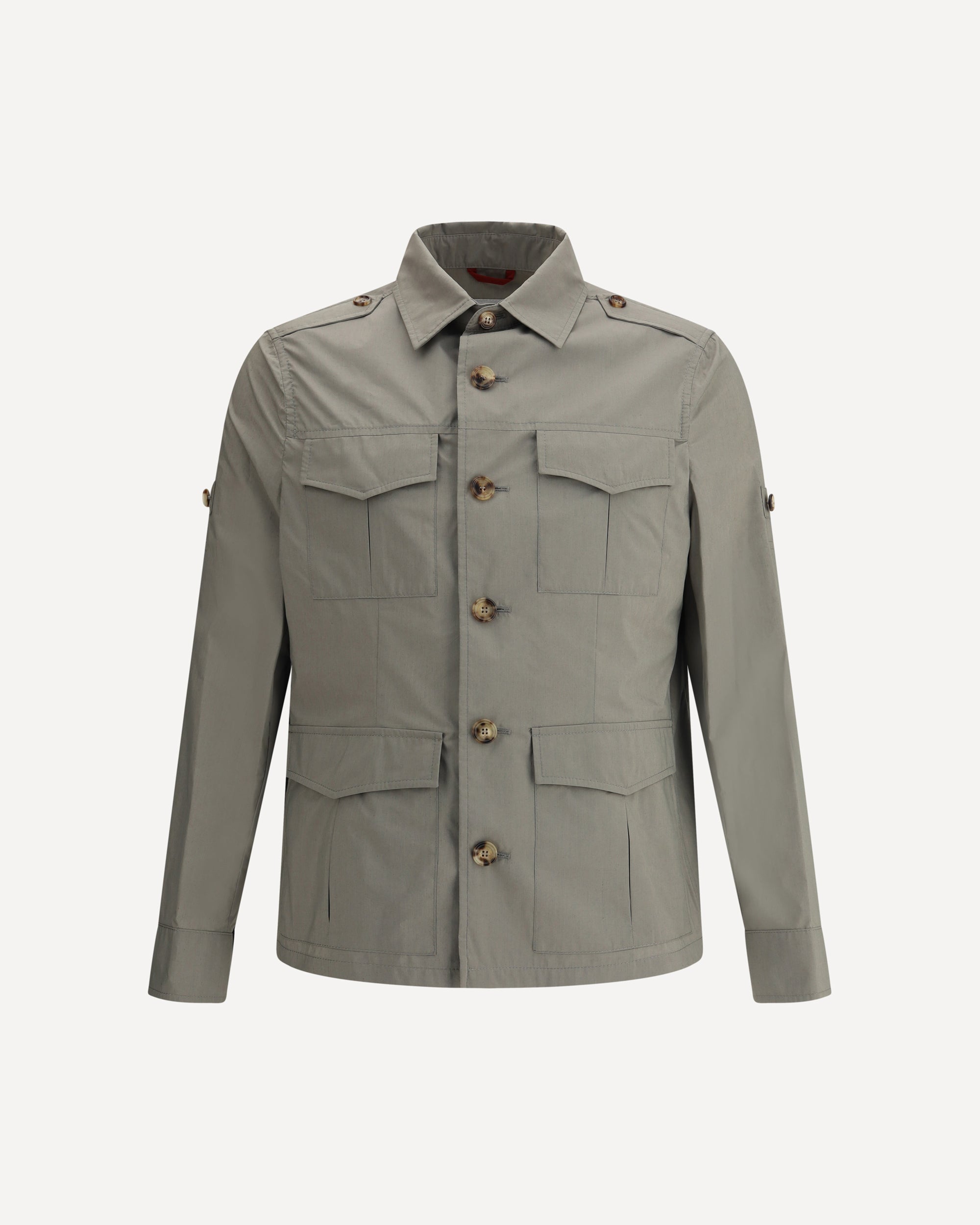 Brunello Cucinelli's cotton Waterproof Jacket is made of lightweight water-repellent techno cotton canvas, perfect for facing the elements in style. The model is unlined, ensuring comfort and versatility. The classic collar and front button closure add a touch of understated elegance. The four patch flap pockets on the front offer practicality and functionality, while adjustable button cuffs allow you to adjust the fit.