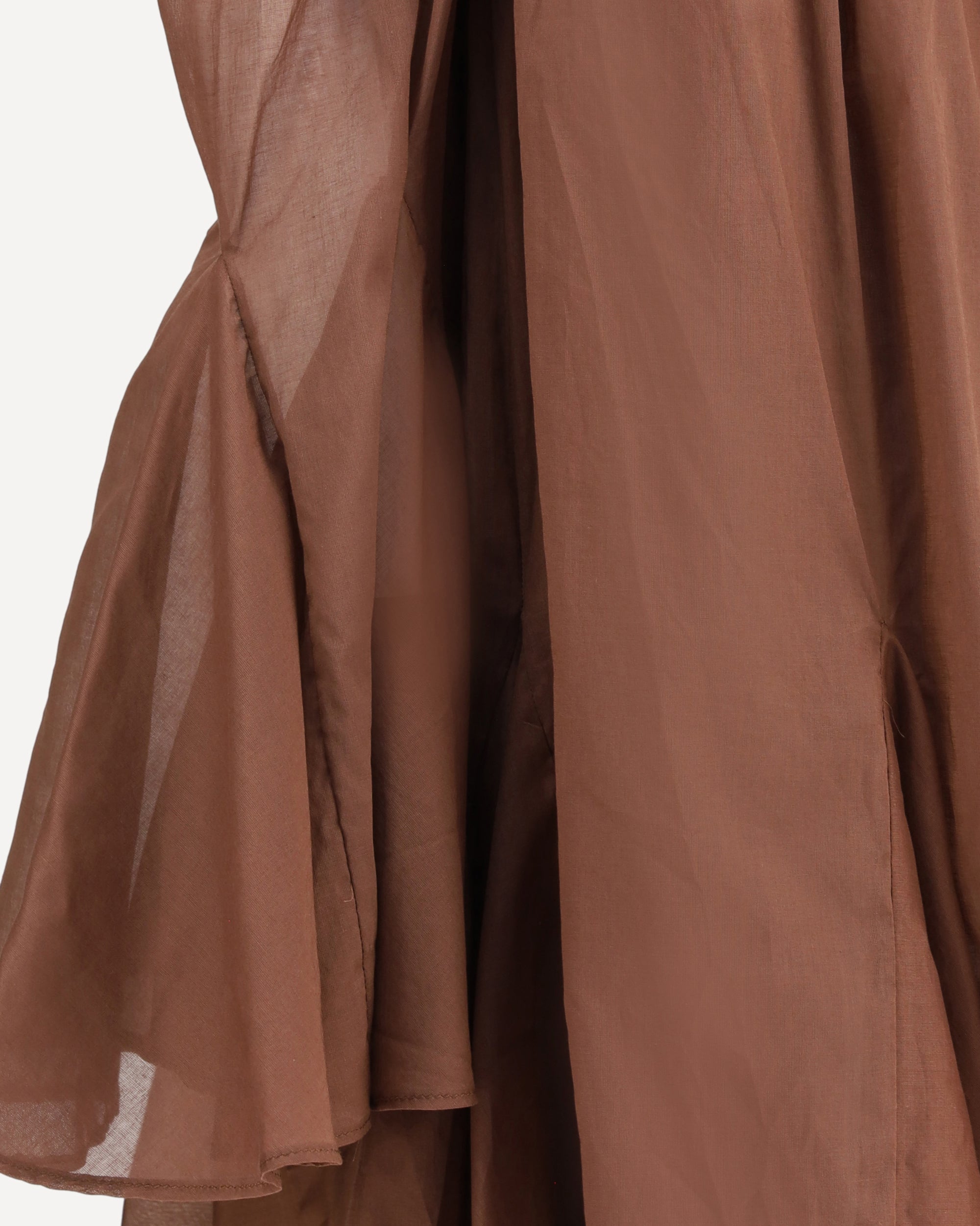 The Whitney short Dress by The Andamane is a cool and sophisticated piece, perfect for an elegant summer look. The flared design, with a deep round neckline and stretch, delicately enhances the silhouette. Flared sleeves add movement and lightness, while the included ribbon to tie at the waist allows you to customize the fit, creating a feminine and modern effect.