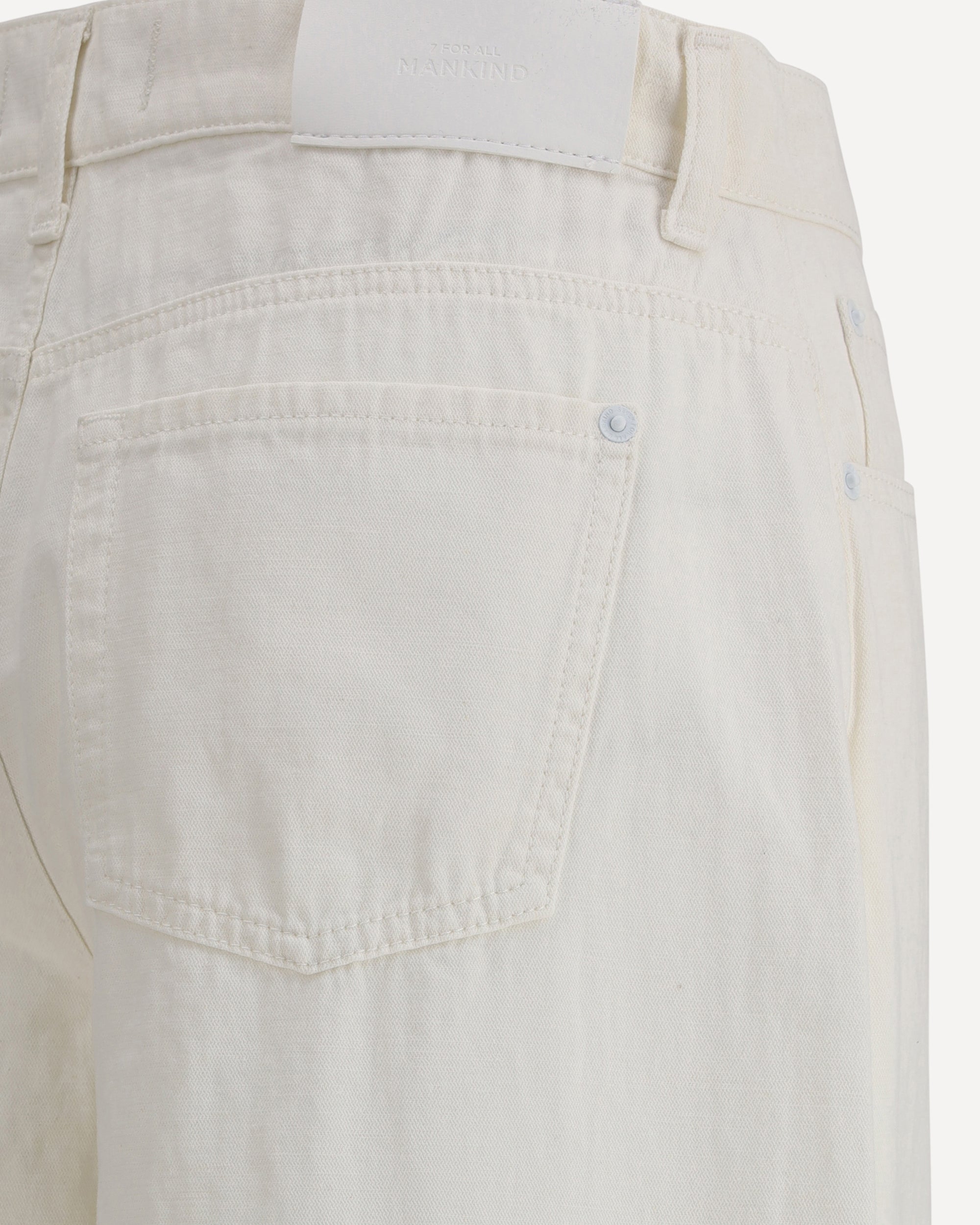 The Willow Linen Pants by 7F offer a loose, comfortable silhouette with a figure-flattering high waist. Extra-wide legs and a five-pocket design provide a modern, versatile look. Belt loops at the waistband allow for customization of the fit, while the leather patch with logo applique on the back adds a distinctive touch of style. Ideal for a casual-chic, relaxed look.