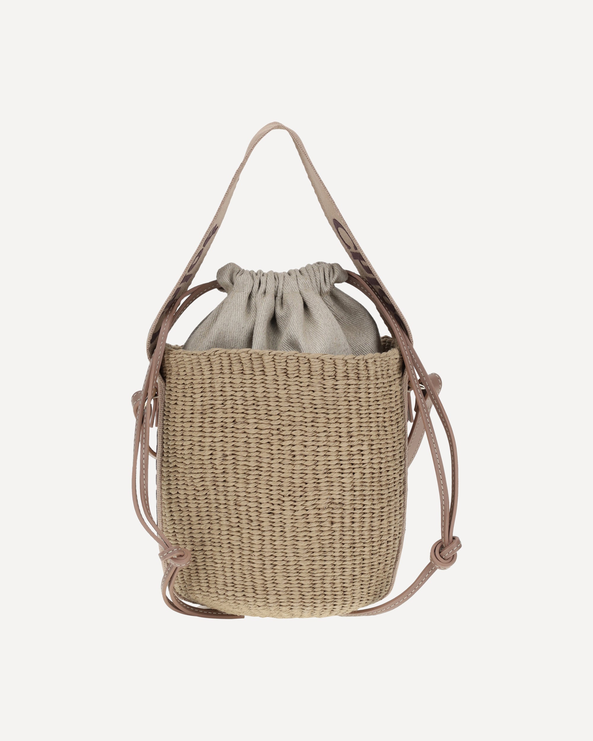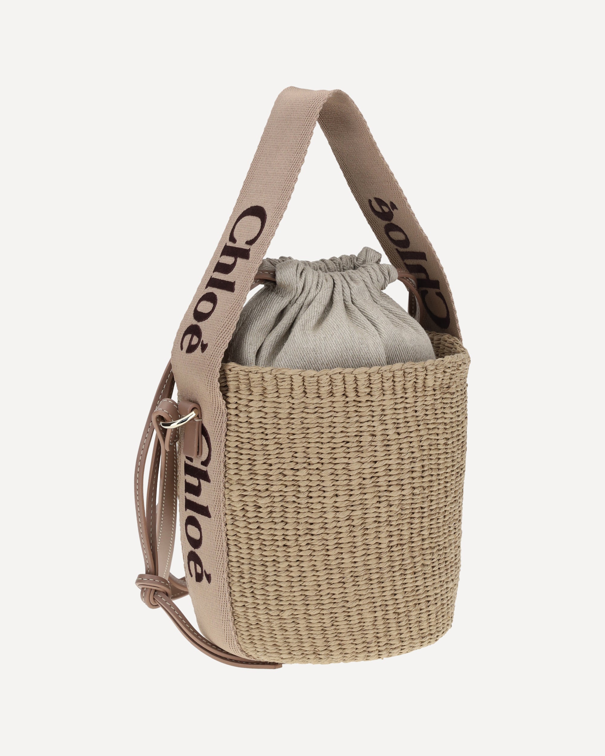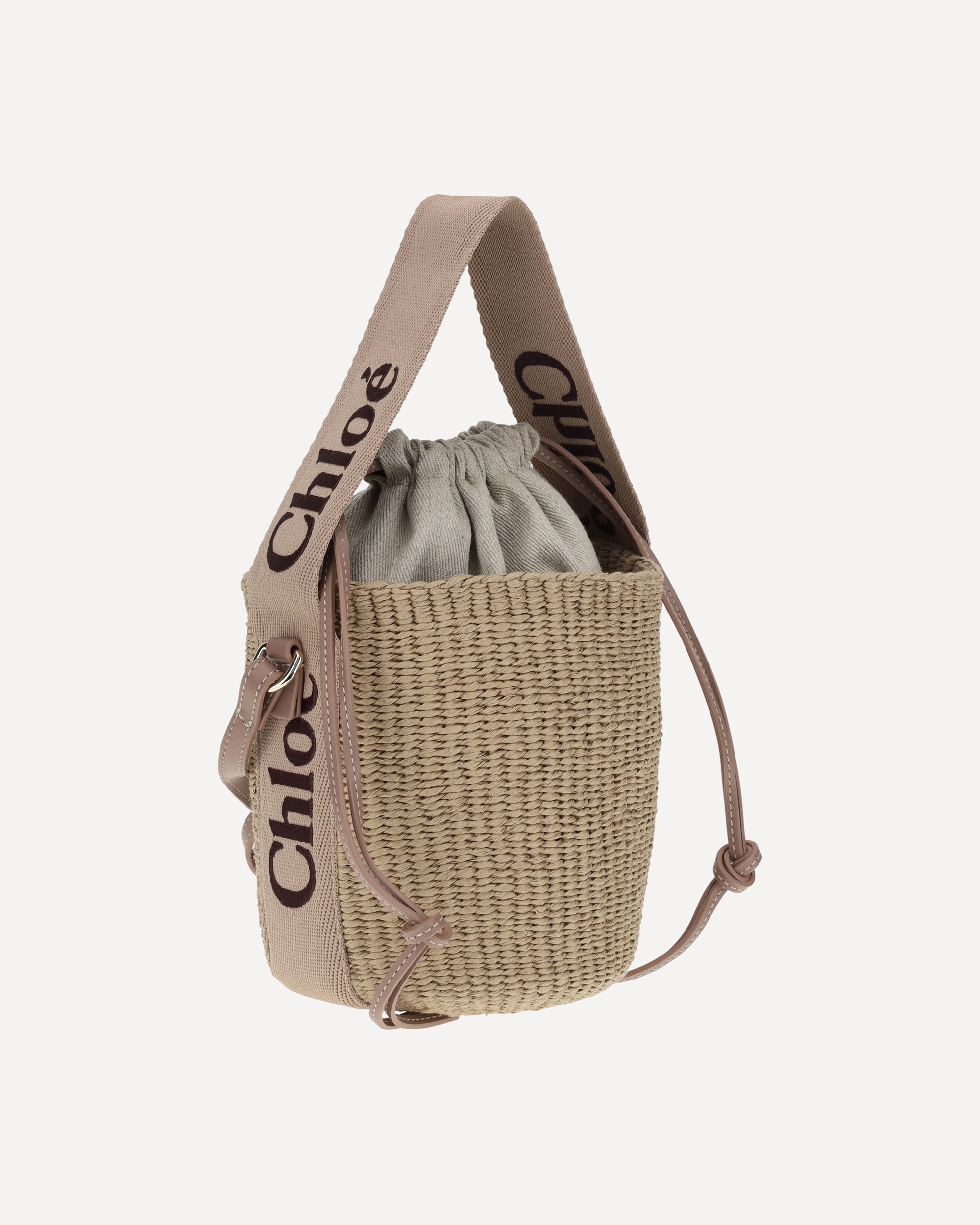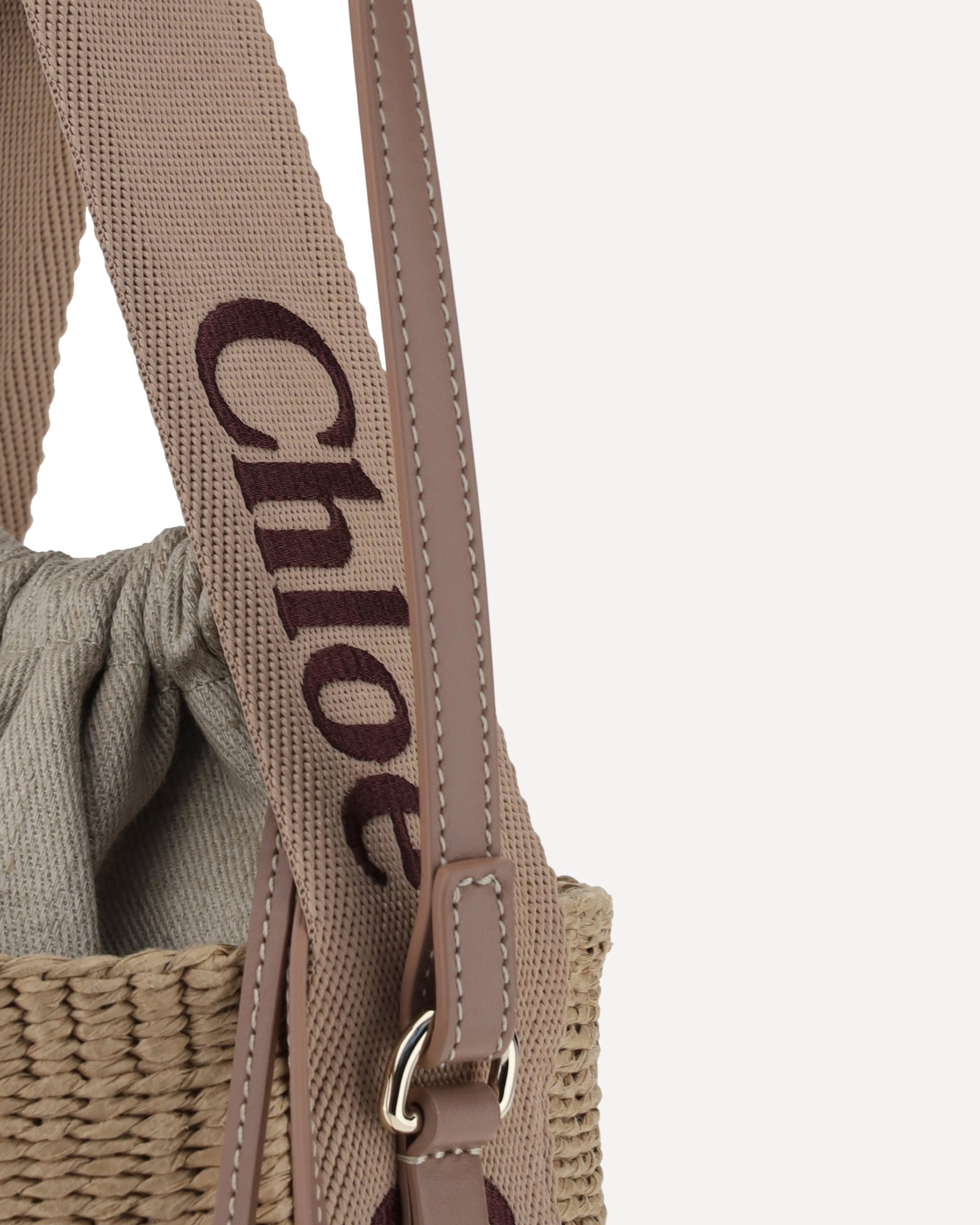 The Woody Raffia Bucket Bag by Chloé is a refined and versatile accessory. With a contrasting double flat handle and extensions on the front and back, it offers a stylish and functional design. The interior compartment, made of fabric, features an adjustable drawstring for secure closure. The brand's iconic logo is applied to the extensions, while the removable thin leather shoulder strap adds convenience and practicality.