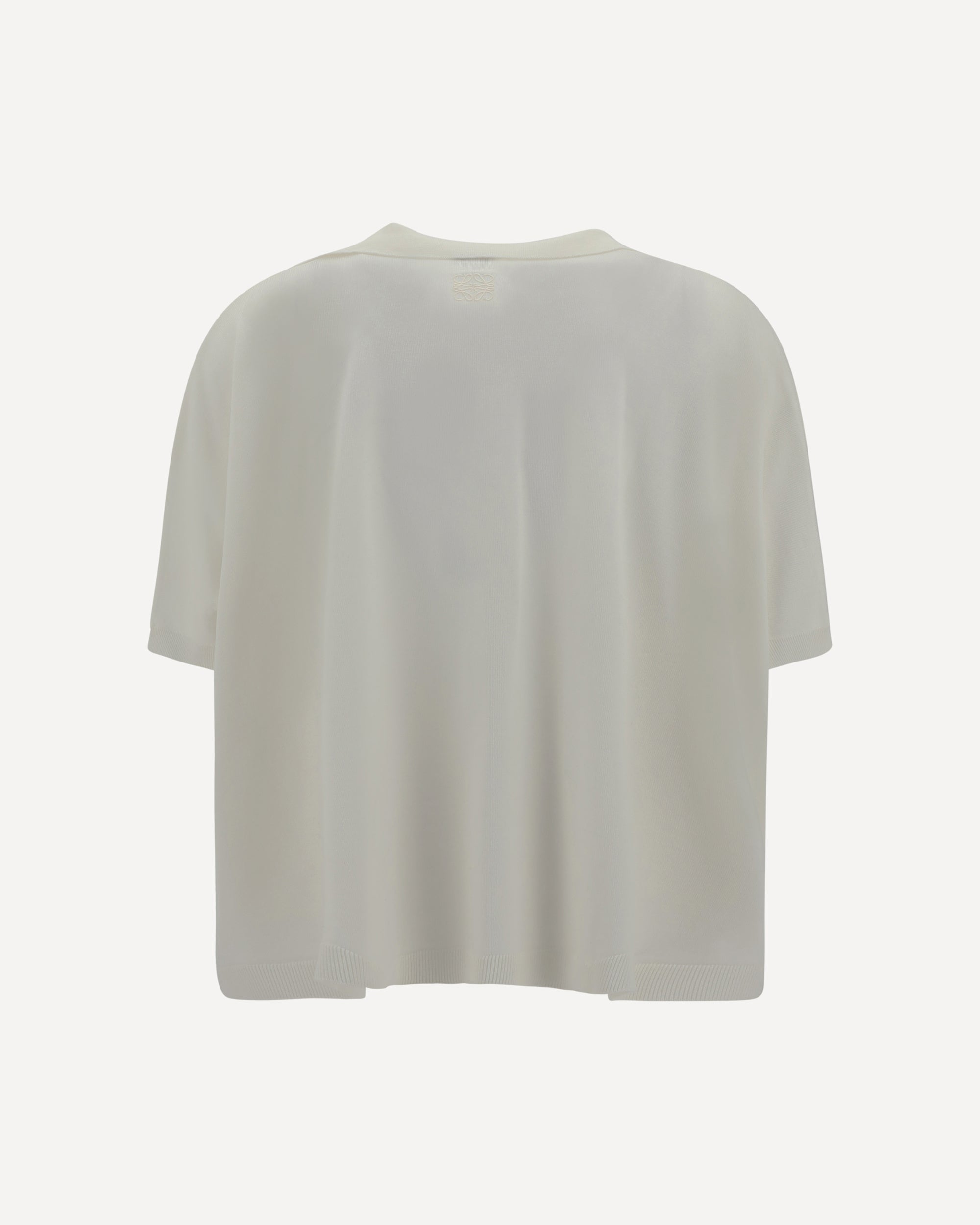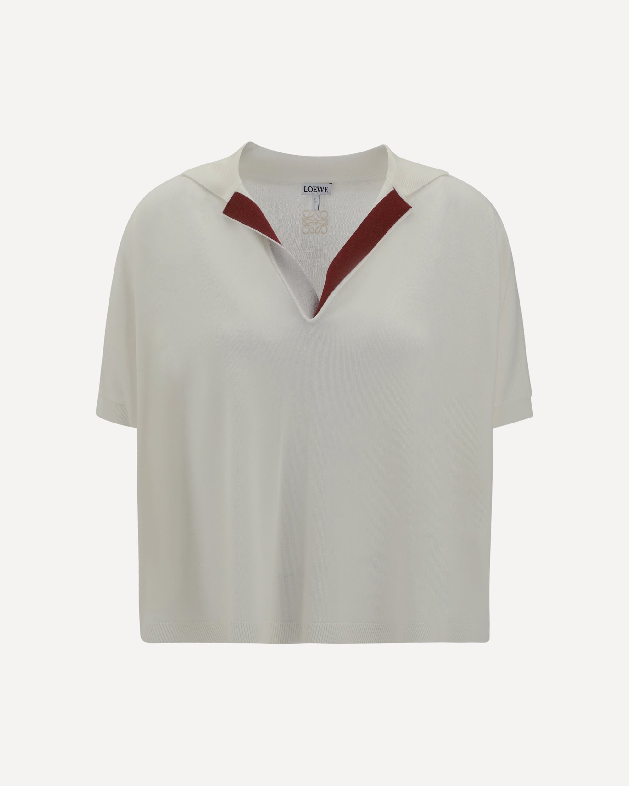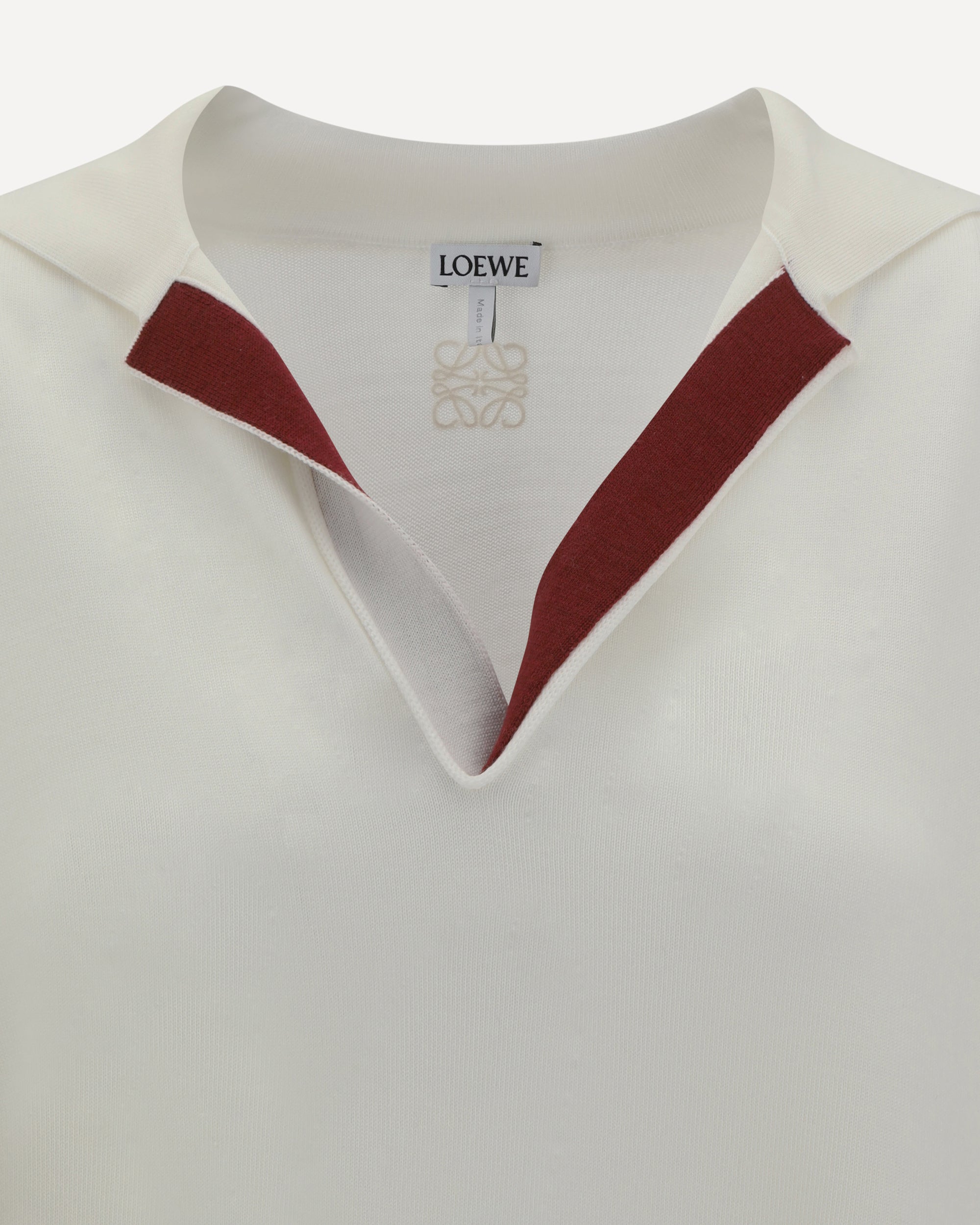 The Loewe wool Top is a sleek and comfortable piece, featuring a classic collar that adds a touch of sophistication. The dropped shoulders create a relaxed silhouette, while the contrasting front opening adds a distinctive, modern detail. The ribbed hem offers a structured finish, and the oversized fit ensures comfort and contemporary style. A versatile top, perfect for a casual yet sophisticated look.