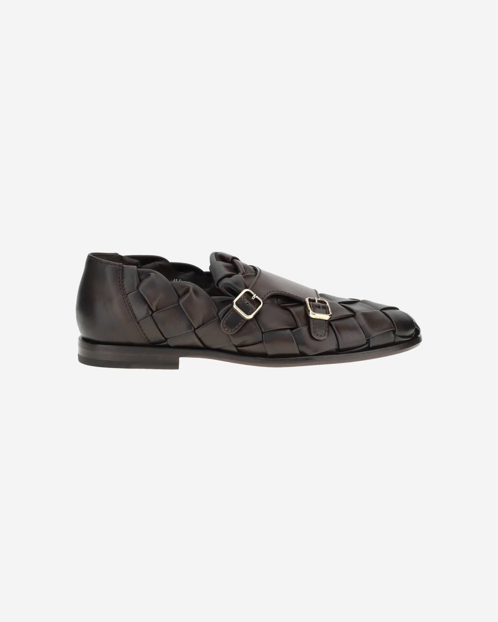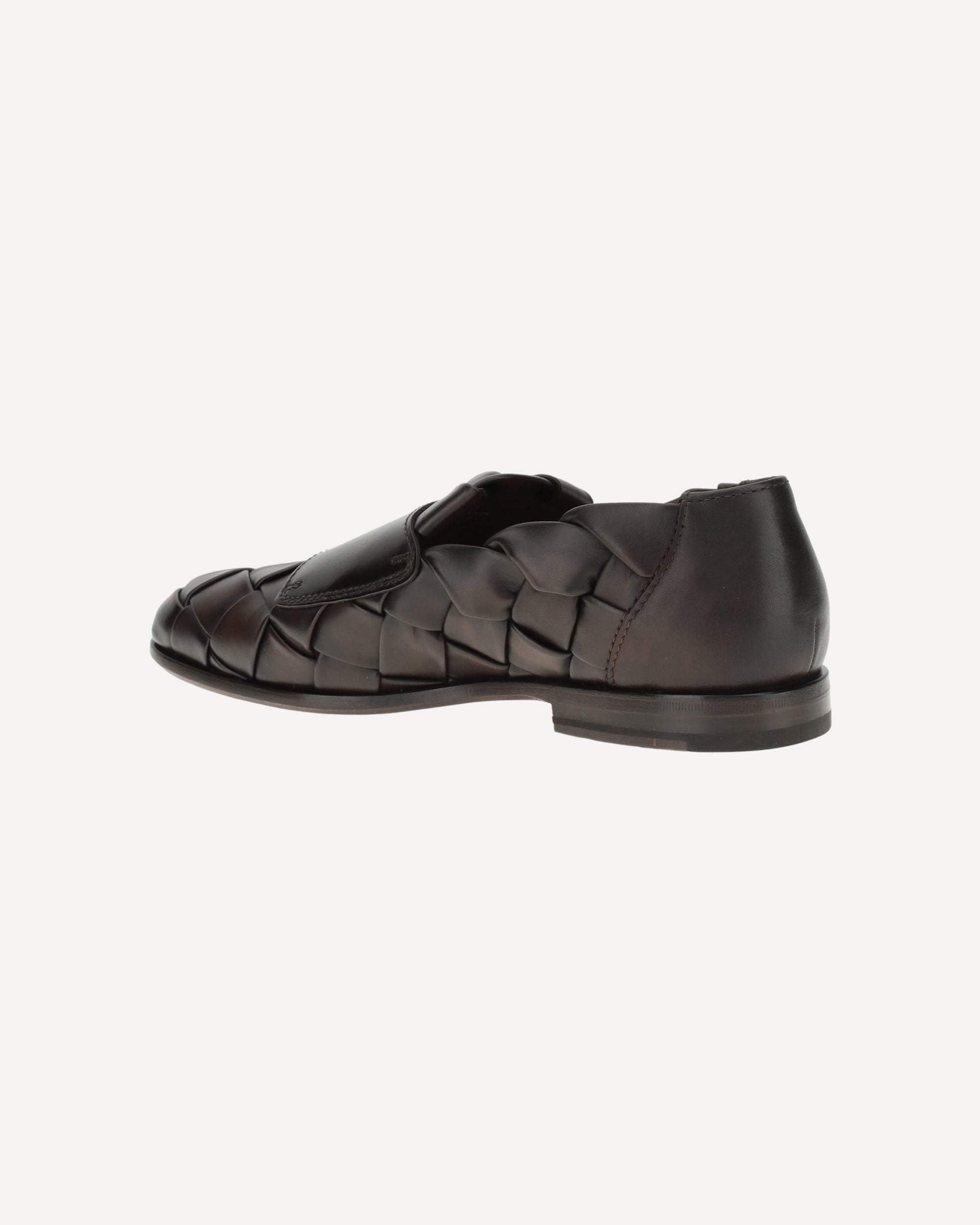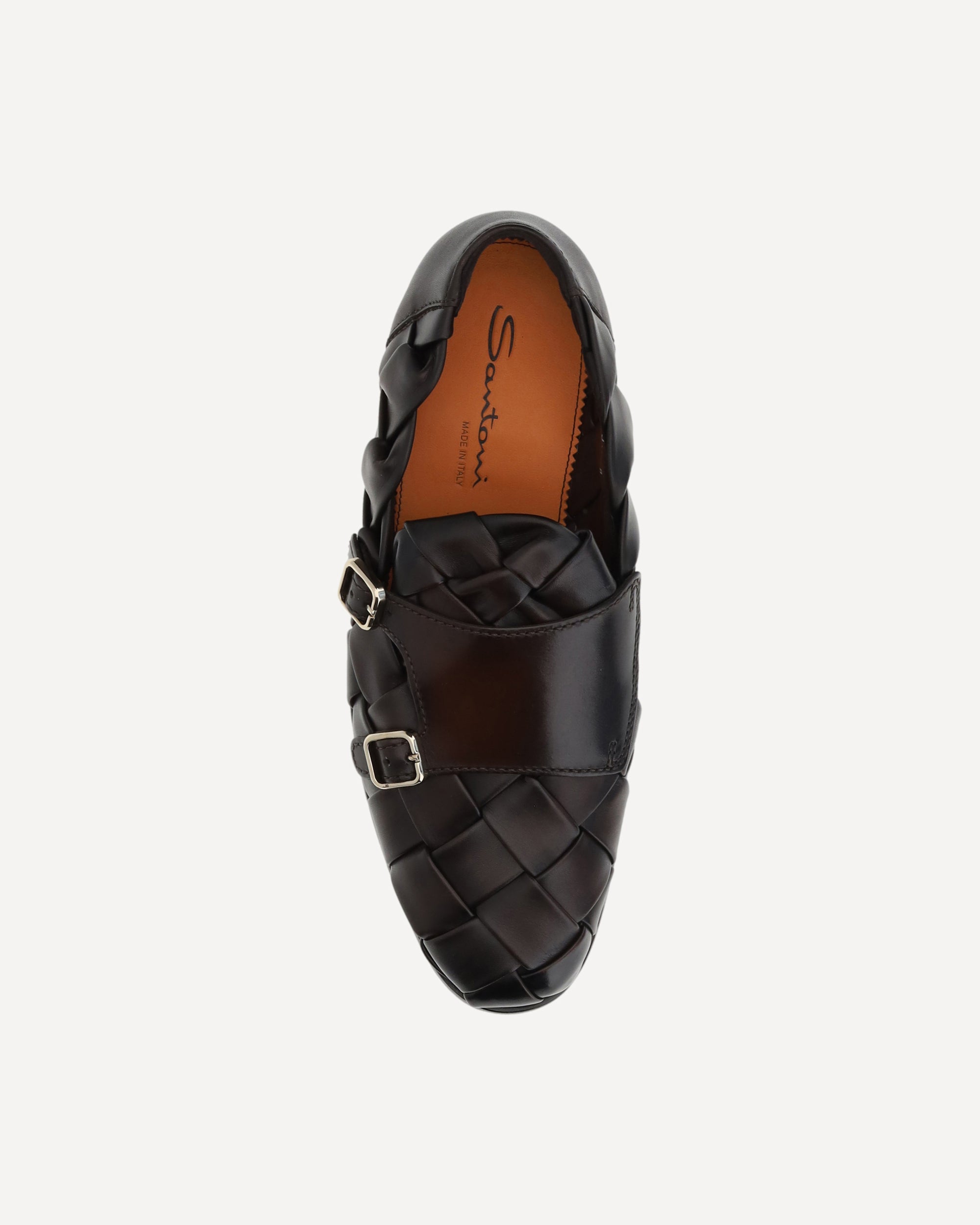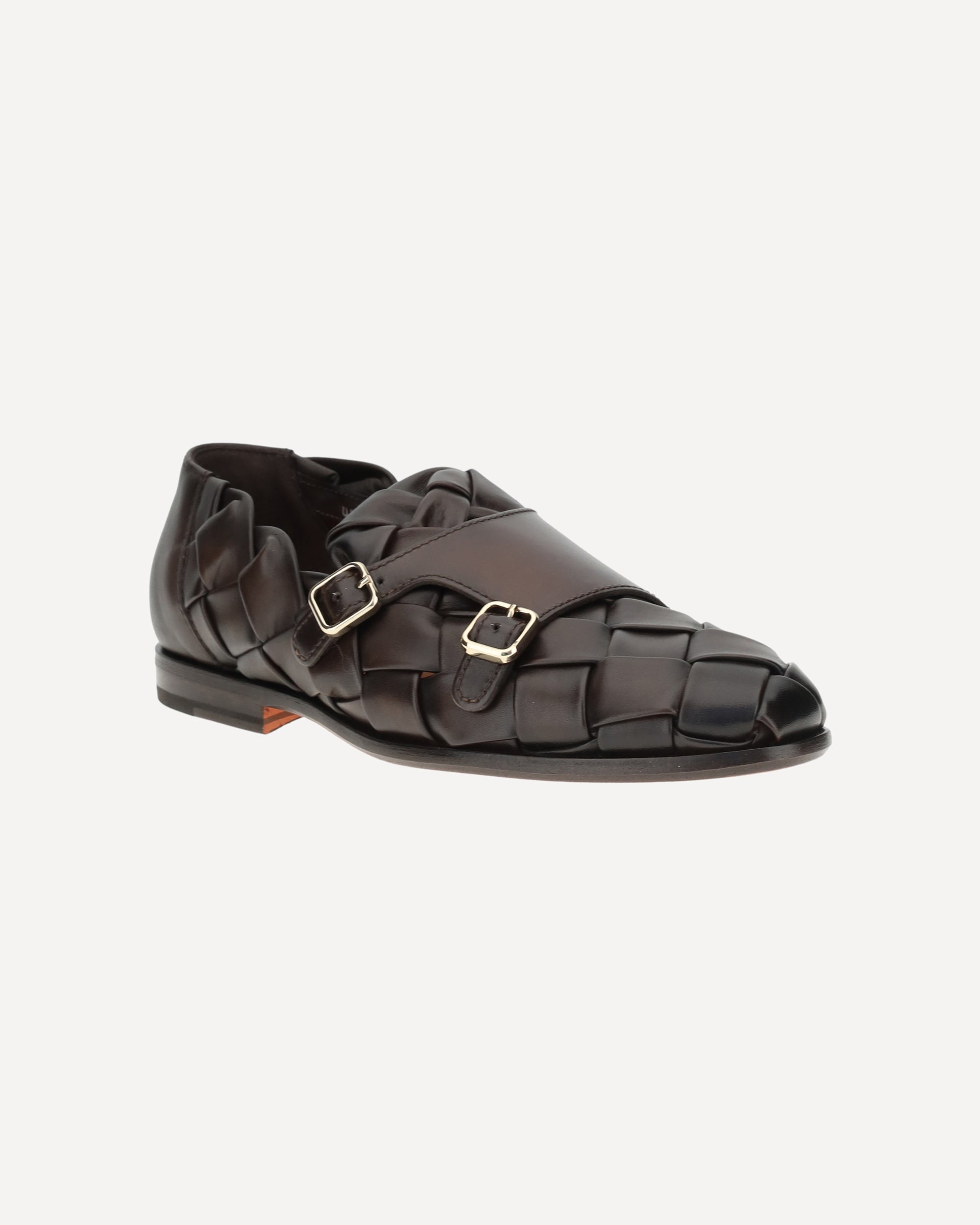 Santoni's Woven Weave Loafers are an elegant example of fine craftsmanship. They feature a rounded toe for comfort and style, while the block heel offers stability and a modern touch. The two upper buckles add a distinctive detail, while the woven leather weave expresses the brand's craftsmanship. A loafer that combines timeless elegance and bold design, perfect for any occasion.