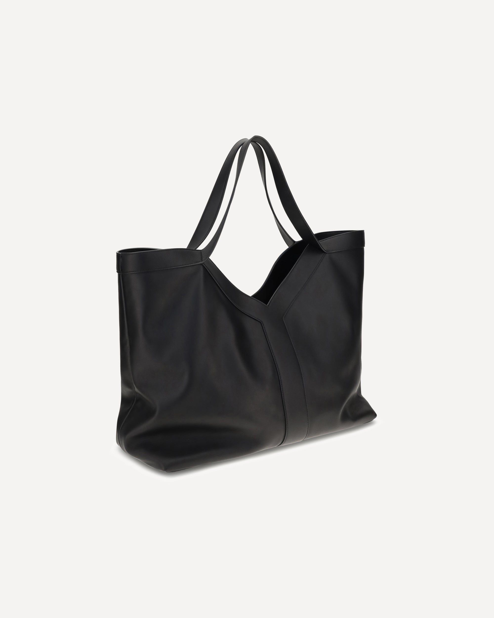 The large Y Tote Bag by Saint Laurent is an elegant interpretation of the maison's essential design. Crafted from finely grained leather and fully lined in tone-on-tone suede, it features the refined Y signature inspired by the brand's historical archives. Lightweight and functional, it features a practical internal zip pocket and a hook closure, perfect for understated everyday elegance.