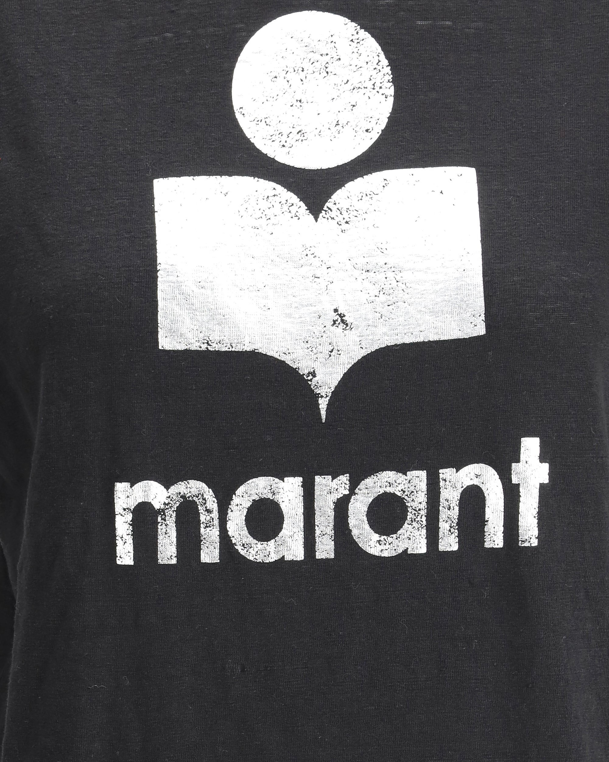 Marant Étoile's Zewel linen T-Shirt is an essential garment that combines comfort and understated style. Made of cool linen, it offers a lightweight and breathable feel that is ideal for warmer days. It features a classic ribbed crew neck and a monochrome design that enhances its versatility. The distinguishing element is the brand's iconic monogram printed in contrast on the front, a subtle but instantly recognizable detail that certifies its authenticity. With a regular fit, it adapts perfectly to different silhouettes, making it a versatile and refined garment for the everyday wardrobe.