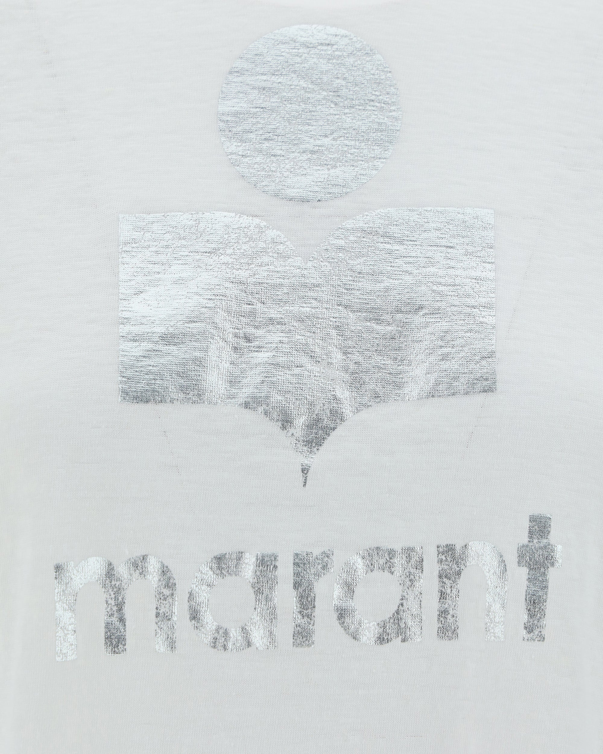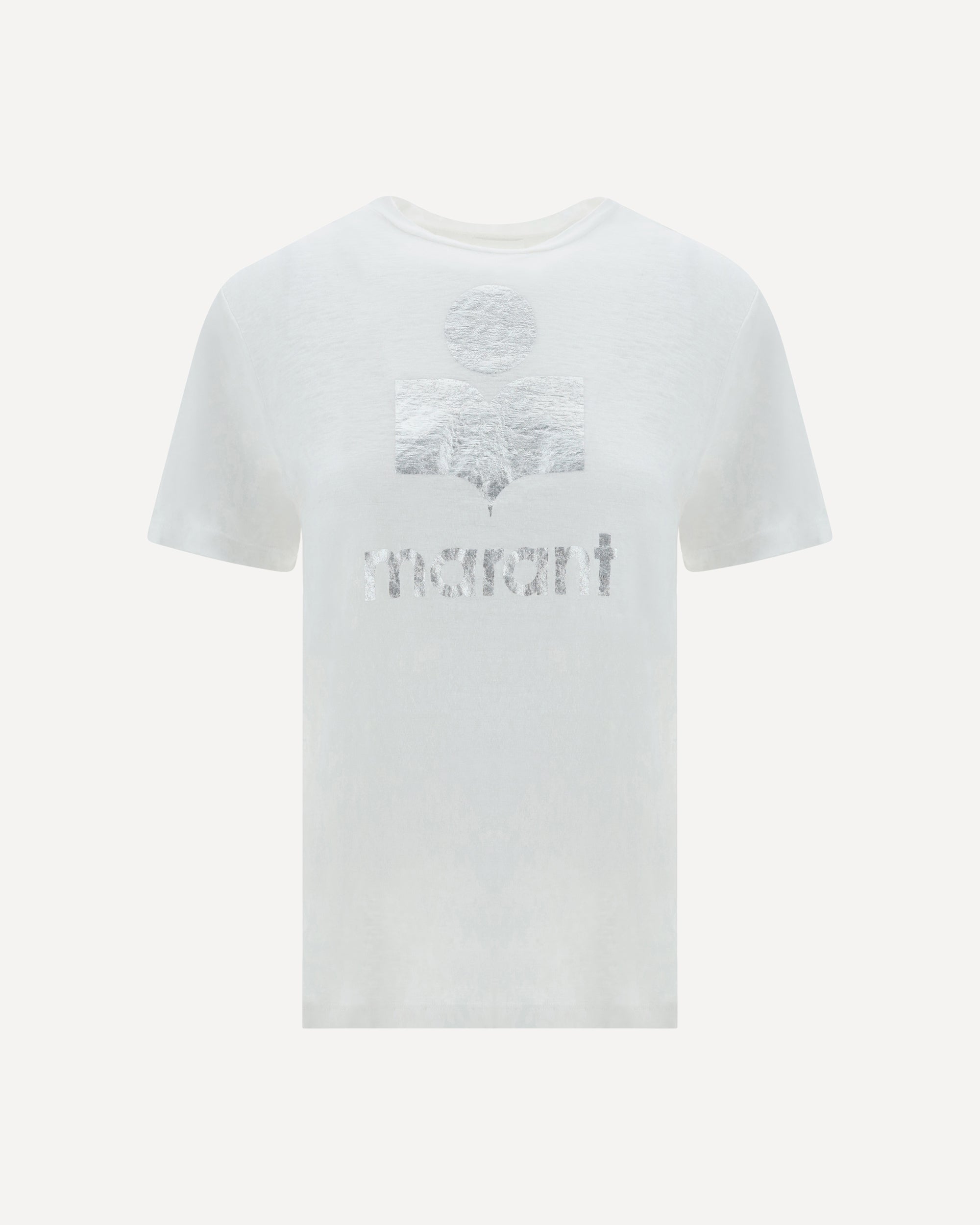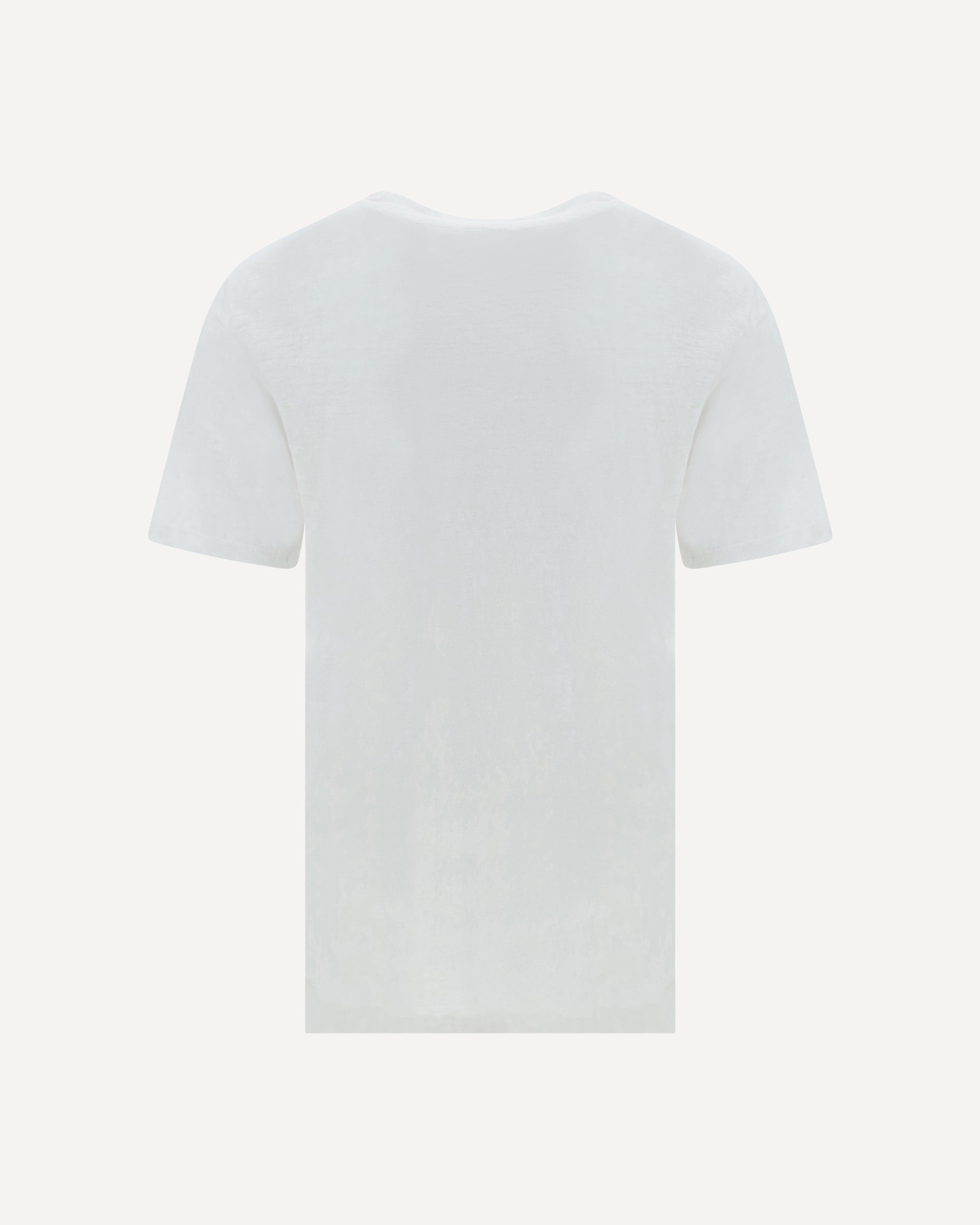 Marant Étoile's Zewel linen T-Shirt is an essential garment that combines comfort and understated style. Made of cool linen, it offers a lightweight and breathable feel that is ideal for warmer days. It features a classic ribbed crew neck and a monochrome design that enhances its versatility. The distinguishing element is the brand's iconic monogram printed in contrast on the front, a subtle but instantly recognizable detail that certifies its authenticity. With a regular fit, it adapts perfectly to different silhouettes, making it a versatile and refined garment for the everyday wardrobe.